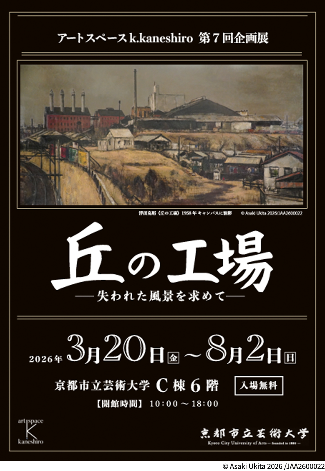 © Asaki Ukita 2026 /JAA2600022 丘の工場 ―失われた風景を求めて― 会期 令和8年3月20日(金)〜令和8年8月2日(日) 開館時間 10:00〜18:00 会場 京都市立芸術大学C棟6階 … 続きを読む 丘の工場 ―失われた風景を求めて―